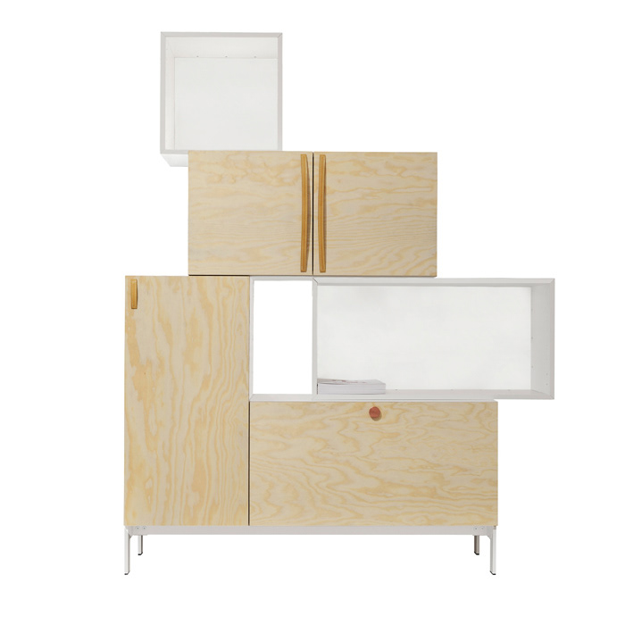 The variety of materials such as felt, copper, leather, brass, and steel offer the opportunity to personalize Tetris into a unique piece of furniture. Everything from large, functional units for the office to small and playful furniture for the home can be created using this system. By Front for Horreds 2015