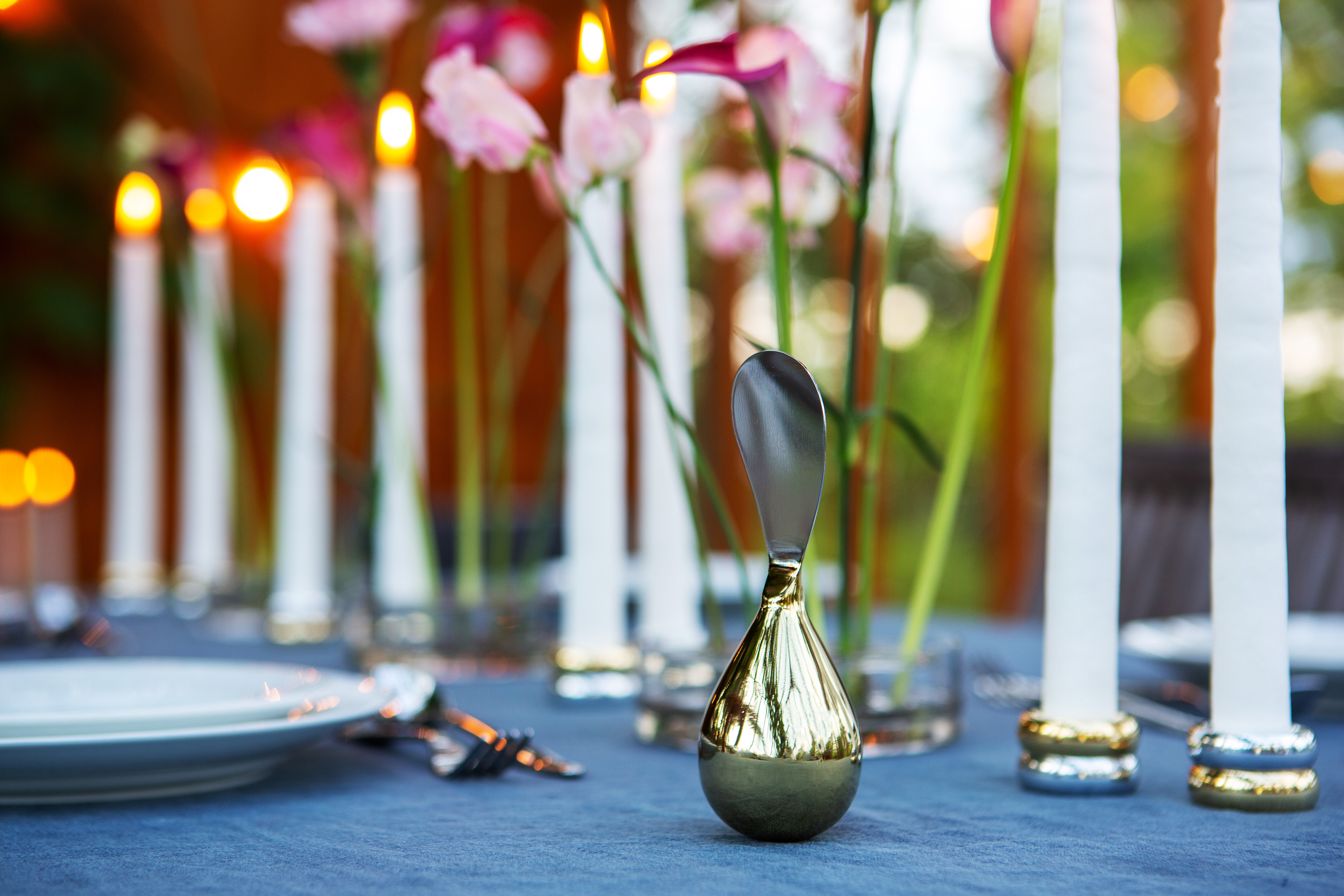 Tilt spreading knife will be able swing back and forth but, due to the center of gravity in the handle, they will never fall over. Apart from saving your tabletop from getting greasy, Tilt will also spread joy around the table.
